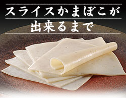 明治十五年創業以来、 老舗の味を守りつづける 新兵衛屋の丹精込めた 本物の味わいをお届けします。 明治15年創業の魚肉練り製品メーカー「新兵衛屋」ブランドを受け継ぎ、新兵衛屋の商品力により、全国の百貨店や観光施設などに商品展開していいます。 こちらのページでは、地魚を使用して『スライスかまぼこ』が出来上がるまでの加工工程をご紹介いたします。